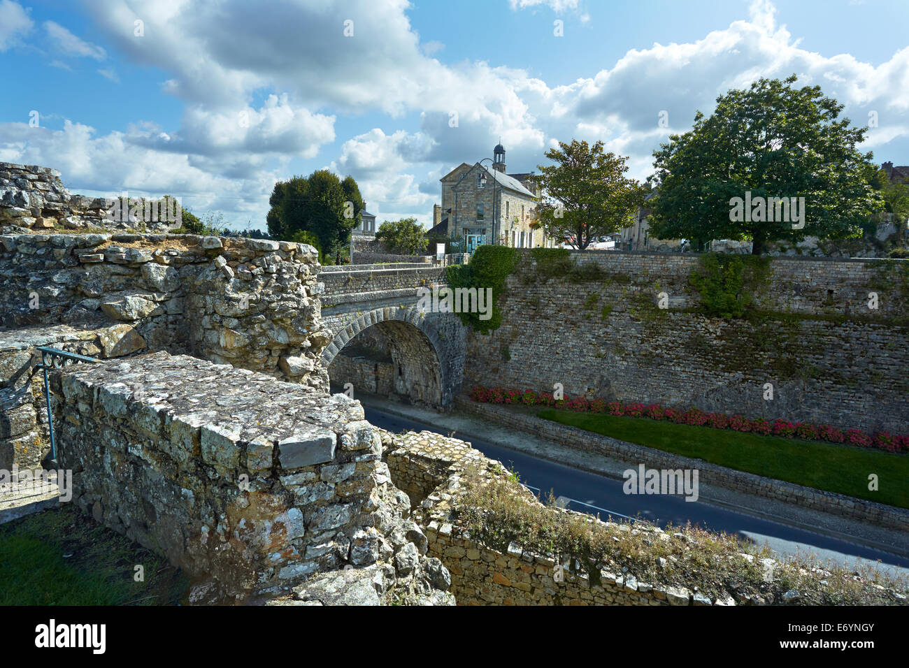 Blick von der Burgruine Domfront alte Stadt. Normandie, Frankreich Stockfotografie Alamy