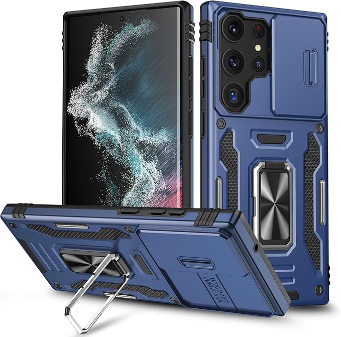 Fewdew für S23 Ultra Hülle,Samsung S23 Ultra Handyhülle Kameraschutz mit Slide Camera & 360