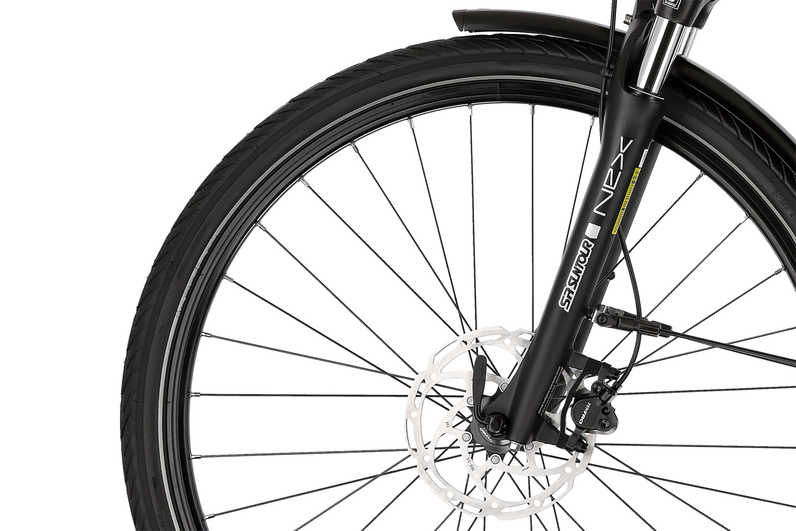 Das Hercules Futura Sport ist mit Scheibenbremsen ausgestattet. Die Shimano MT201. Bremse sorgt dafür, dass das eBike sicher zum Stehen kommt. Die Bremskraftübertragung ist hydraulisch. Gewicht. Mit einem Gewicht von 24,6 kg gehört es zu den schwereren Rädern seiner Kategorie.