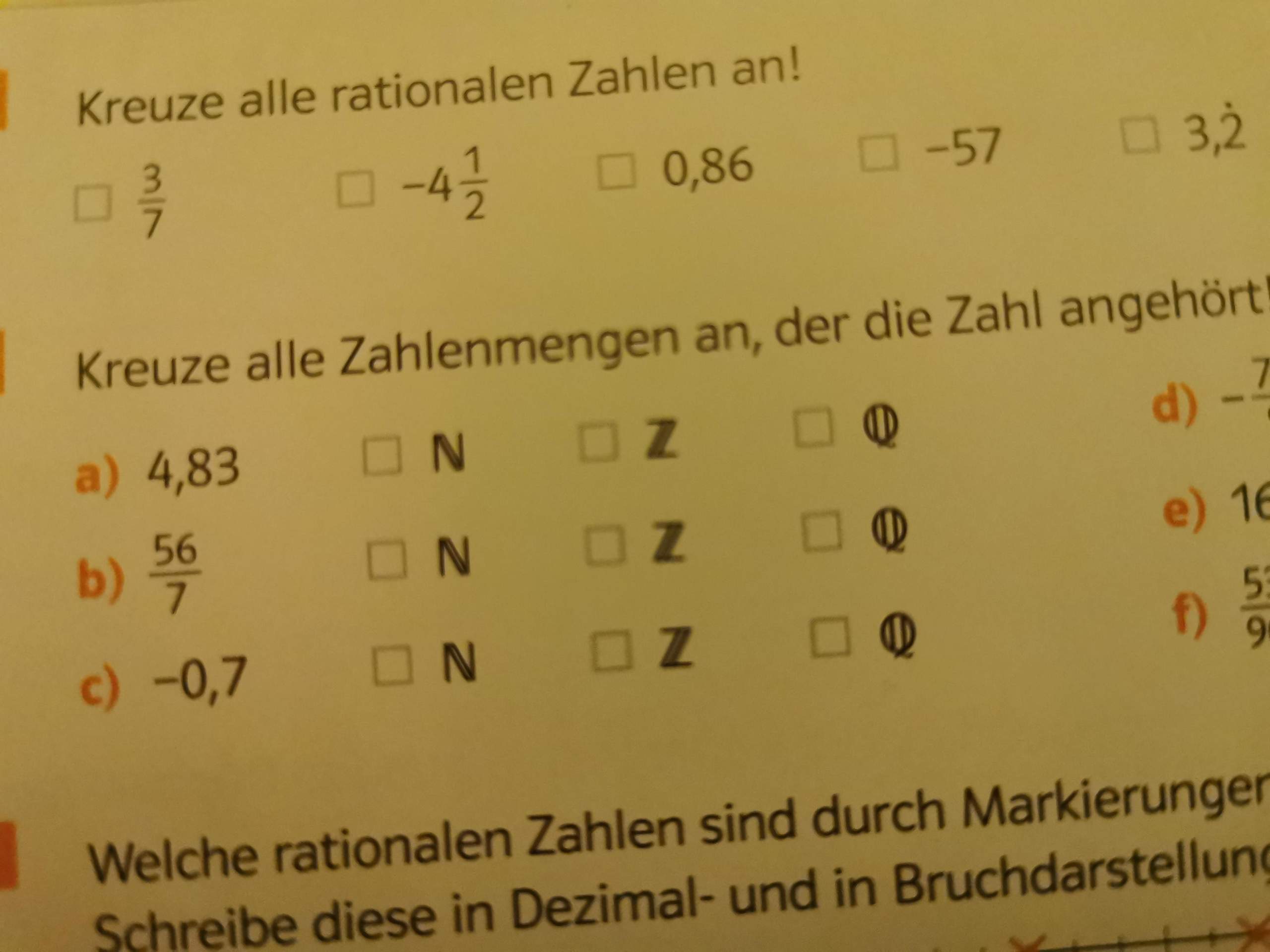 Natürliche Zahlen, ganze Zahlen und Bruchzahlen gehören zu den (nationralen) Zahlen. Die Pfeilrichtung am Zahlenstrahl gibt an, dass die Zahlen in dieser Richtung (rößger) werden. Das (Viechzoren) zeigt an, ob die Zahl größer (+) oder (nerkiel) (-) als Null ist. Jede rationale Zahl besteht aus dem (zorVeichen) und dem (Bagert).
