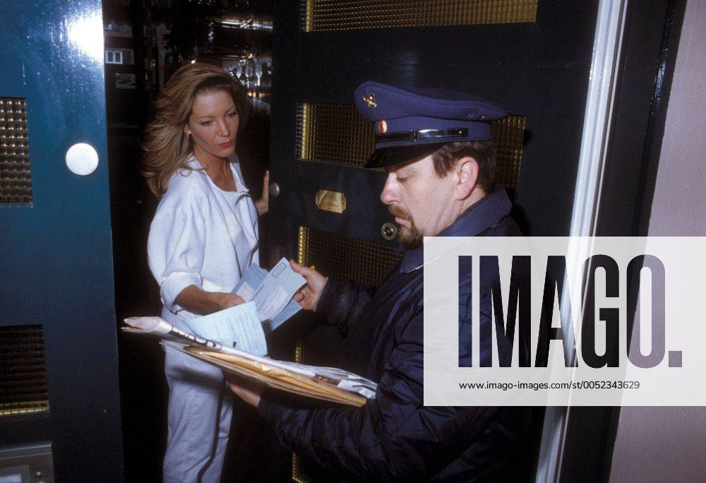 Christina Keiler (Ehefrau von Roland Kaiser) mit einem Postboten an ihrer Haustür in