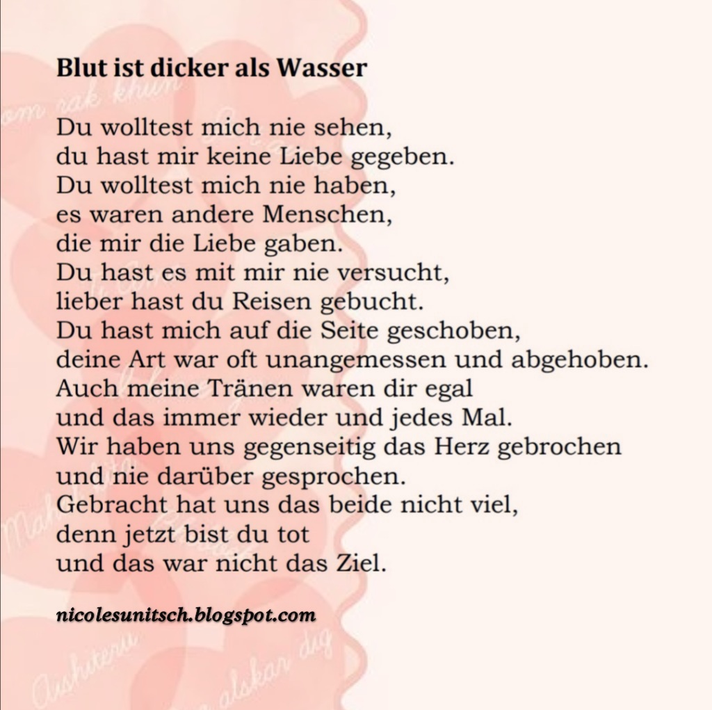 Gedichte von Nicole Sunitsch Autorin Blut ist dicker als Wasser Gedicht von Nicole Sunitsch