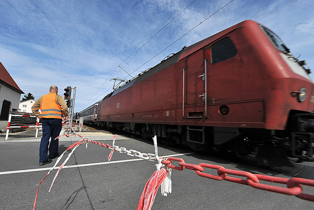 Rotweiße Ketten sichern den Bahnübergang Südwest Badische Zeitung